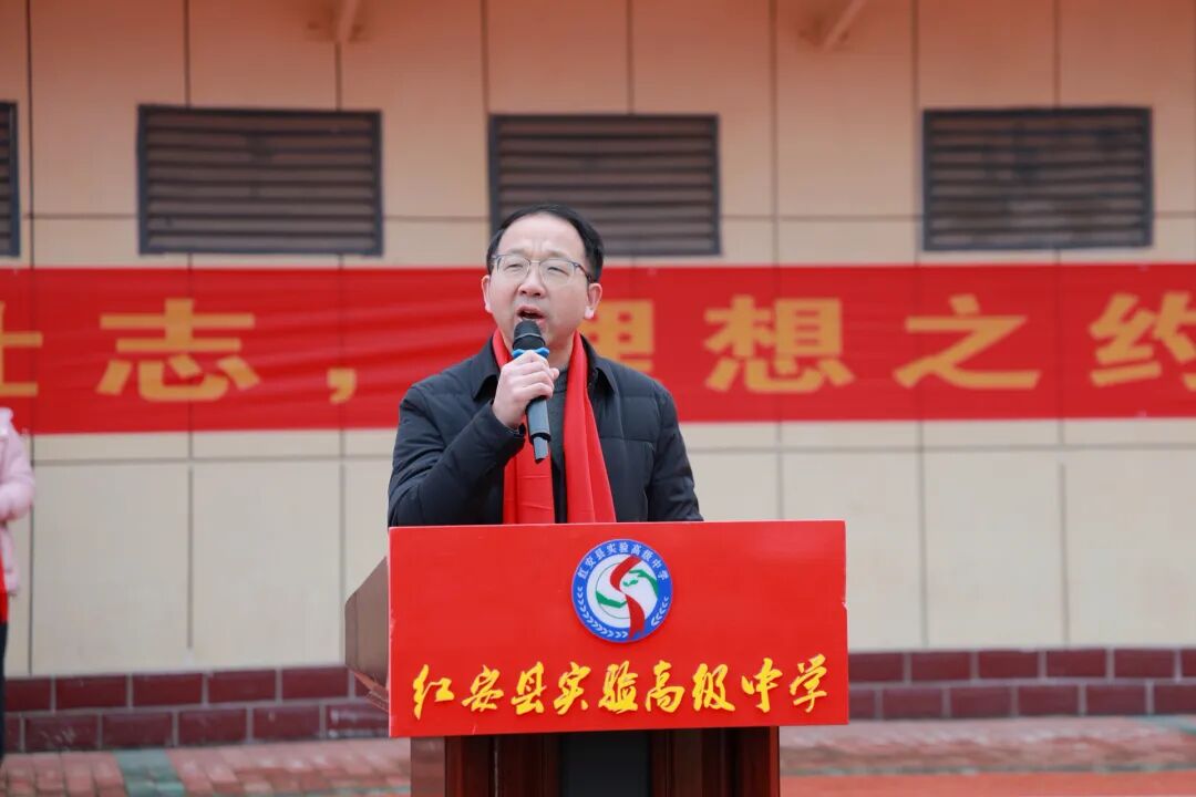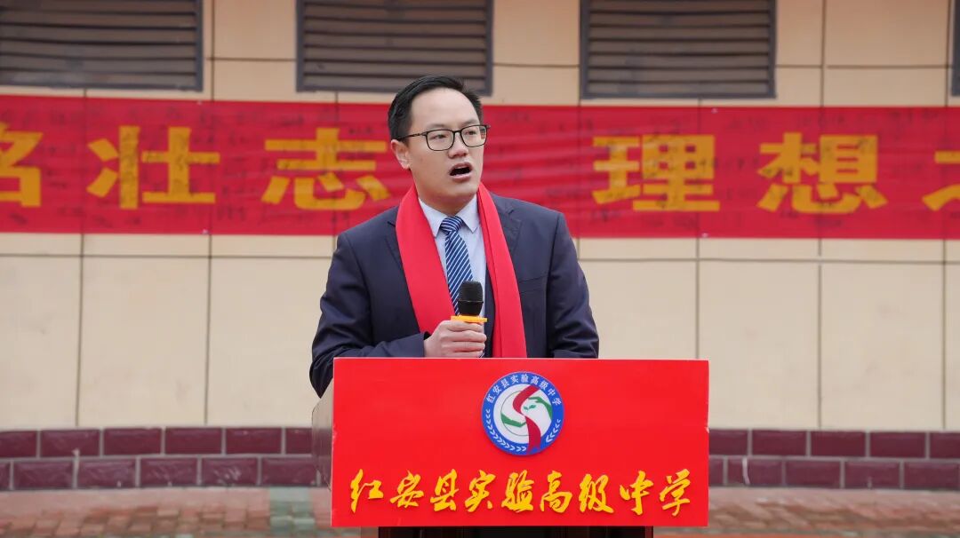 校长高毓材以“十八而志承红安魂,百日砺剑圆青春梦”为主题寄语学子,祝贺大家成年,勉励学子传承红安“朴诚勇毅、不胜不休”红色精神,做到懂感恩、担使命、知敬畏。同时围绕高考百日冲刺,鼓励学子坚定信念、科学备考、执着奋进,以昂扬姿态迎战高考,不负青春与家国期许。校长的话语铿锵有力,为学子们指明方向、注入冲刺力量。