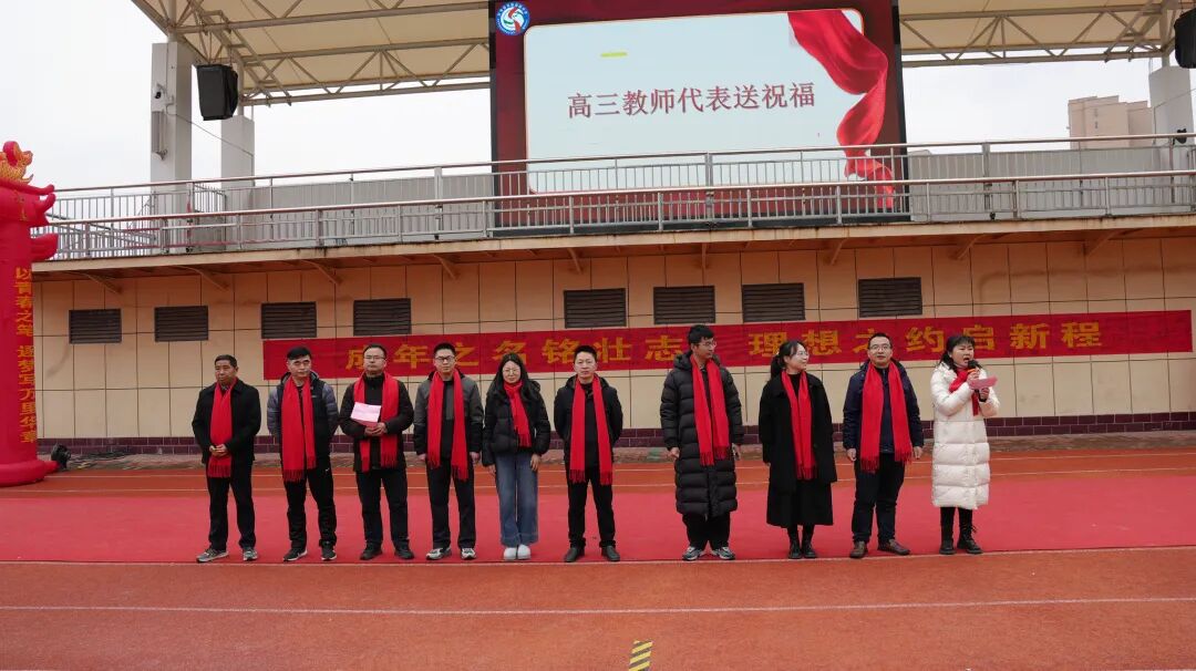 学校党委书记高龙井为成年学子送上真挚致辞,向迈入十八岁的青年致以热烈祝贺,向辛勤付出的家长和教师表达崇高敬意。他指出,十八岁是青春的加冕,更是责任的启航,寄语学子以信念铸魂、以担当立身、以自律守正,做有志气、有骨气、有底气的时代新人,更以成人之姿迎战高考百日硬仗,在青春赛道上奋力冲刺。