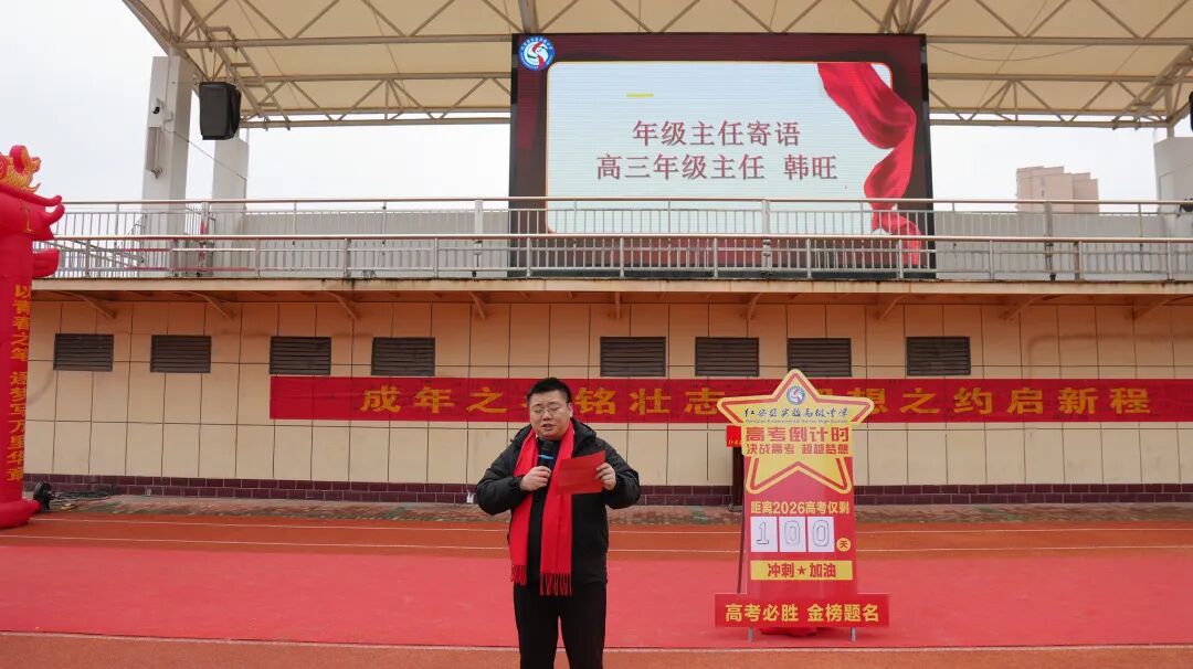 高三年级主任韩旺送上冲刺寄语,他始终与学子并肩作战,话语中满是对同学们的信心与期许,传递着并肩前行、全力以赴的底气,激励学子在最后的百日里凝心聚力、脚踏实地,用汗水浇灌梦想。