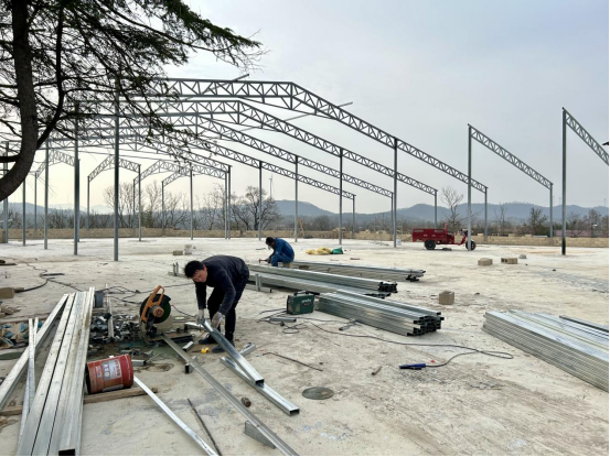 “这里将建成集住宿、研学、体验于一体的新庙红色民宿,到时候城里来的学生们不仅能住,还能在广场上开展团队活动。”项目现场负责人许玉平指着眼前刚刚封顶的建筑群介绍道。放眼望去,7000平方米的民宿主体已雏形初现,工人们正在精心打磨每一处细节,力求让红色文化与现代舒适完美融合。