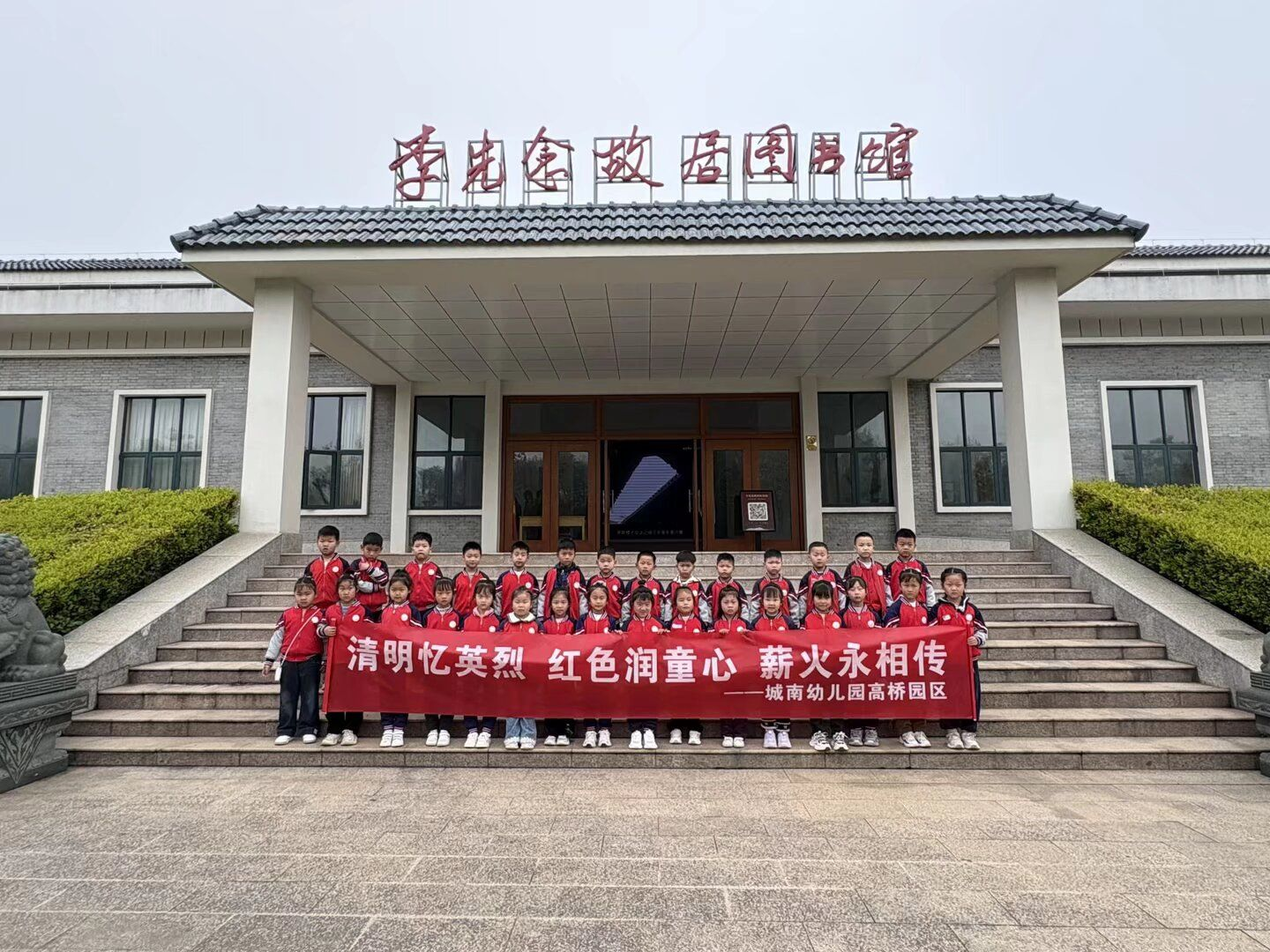 上午,师生们身着整齐的校服,手持小白花,怀着崇敬的心情前往李先念故居纪念园。师幼代表敬献花篮,肃立默哀3分钟,现场一片寂静,寄托着对革命先辈的无尽追思。