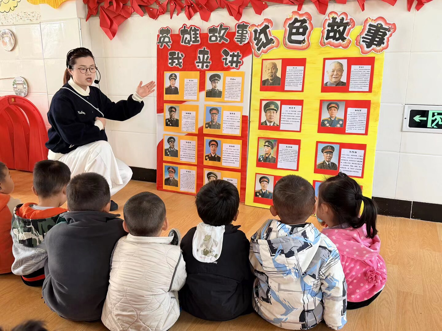 园区还结合幼儿年龄特点,开展分班级主题活动。小班举办英烈事迹图片展,老师合作制作展板,带领幼儿观展并讲述英烈故事,萌发孩子的敬英雄之情。中班开展缅怀小花篮制作活动,孩子们亲手制作花篮,完成后摆放至班级“红色缅怀角”与图书室门口,寄托哀思。大班举行“我心中的英雄”分享会,亲子共制分享卡,孩子上台讲述英雄故事,分享卡也一同陈列,营造浓厚缅怀氛围。