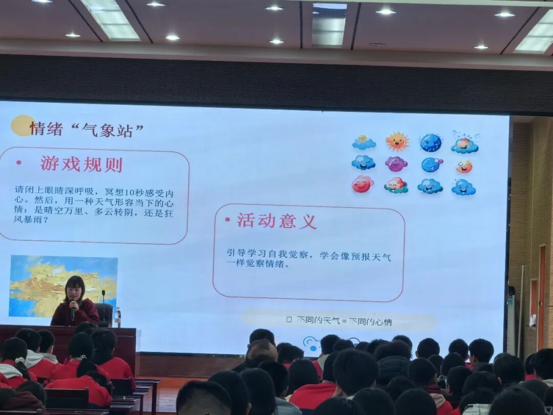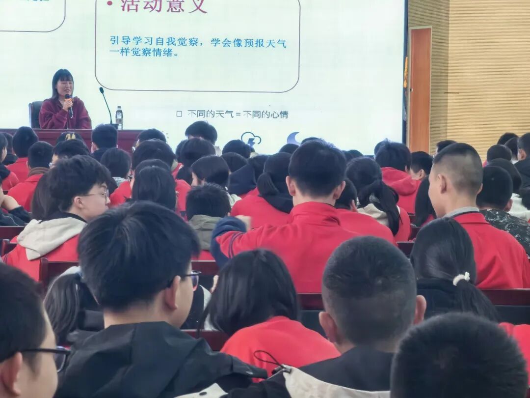 叶小舟老师以“驾驭青春‘心’浪潮,做自己情绪的主人”为主题,系统讲解情绪知识。她引导学生们觉察自身情绪,剖析学生学业分化、人际矛盾、情绪波动等典型困惑,解读青春期生理剧变、自我认同构建及双重压力来源等核心要点。结合真实案例,叶老师帮助学生们科学认知青春期情绪波动,引导其正视成长烦恼、建立积极情绪认知,现场大家都专注聆听、认真思考,增强了情绪管理意识。