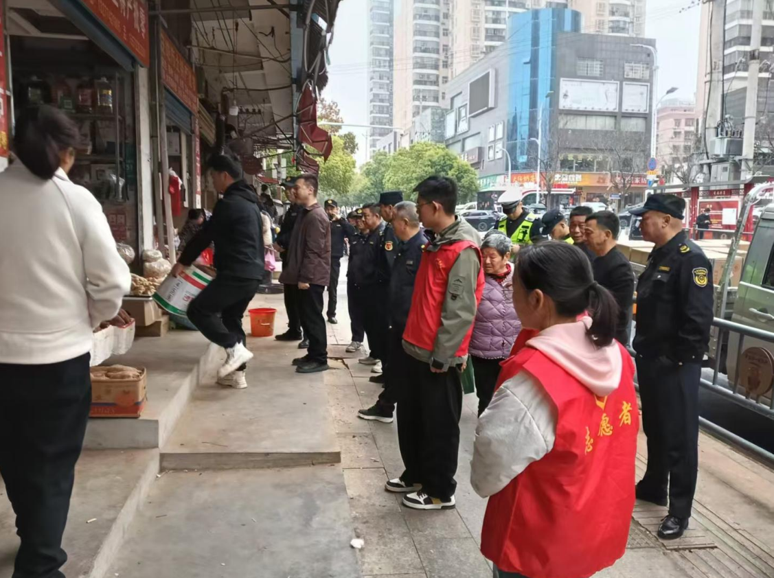 当天早市,红安县城关镇土井社区组织下沉单位和志愿者联合县市容整治专班11组开展了第103次市容市貌及交通秩序综合执法行动。但与半年前不同,这次行动的重点已从“攻坚”转向“守护”——对易反弹点位实行“回头看”,引导流动摊贩进入便民点规范经营。