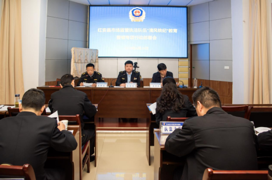 红安网消息 4月15日上午,红安县市场监管局召开全县市场监管系统执法队伍“清风铁纪”教育整顿专项行动部署会。