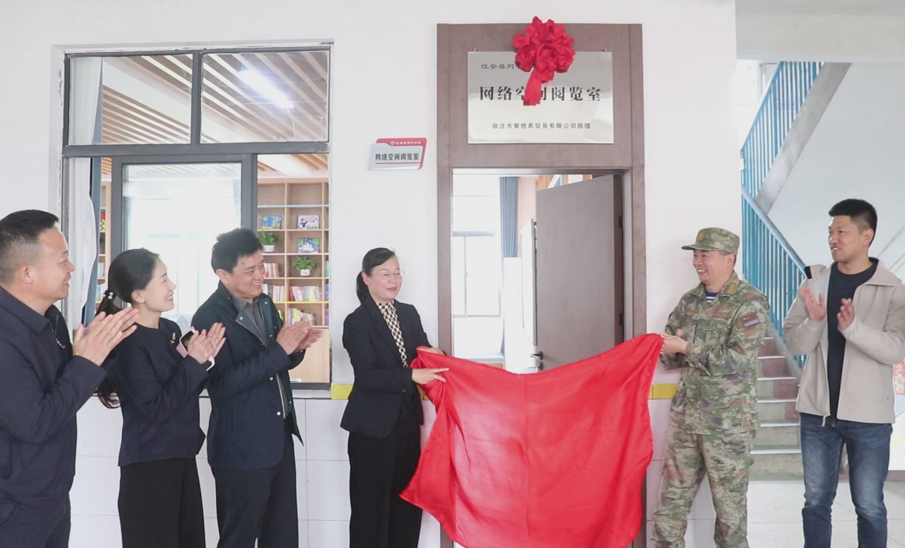 红安网消息 4月17日,红安县列宁小学举行“闪闪红星”育人体系成果展示暨家长开放日活动,并举行“网络空间阅览室”“海之声音乐教室”揭牌仪式,海军工程大学试训基地大校政治委员郭自强,宿迁市紫煜昇贸易有限公司总经理李永生,红安县政府副县长叶金容,以及县教育局、七里坪镇负责人、列宁小学师生代表、家长代表500余人参加活动。