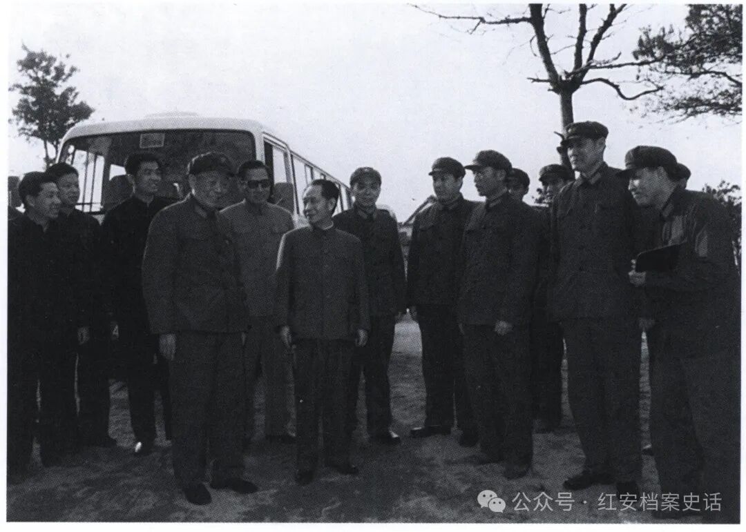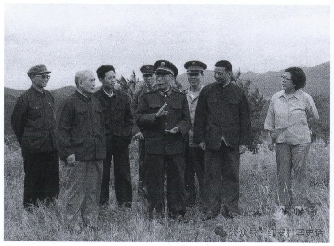 20世纪80年代初,周世忠(左四)、关广富(左一)、钱运录(左二)等陪同胡耀邦(左六)、乔石(左五)视察