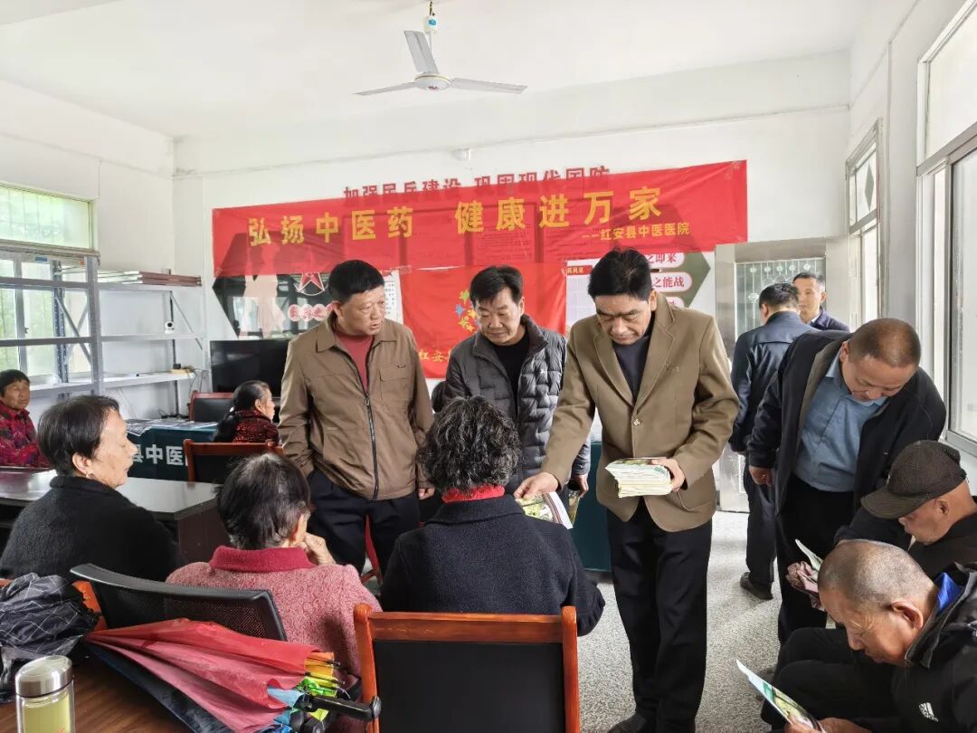 红安网消息 4月23日,红安县科协联合县机关事务服务中心、县接待办、县中医医院走进驻点帮扶村上新集镇富西村,开展“红心相伴·安享晚情”科技志愿服务活动,以实际行动,落实县委、县政府“红心相伴·安享晚情”工作部署,为90余名村内老年人、留守老人送上实实在在的暖心关怀。