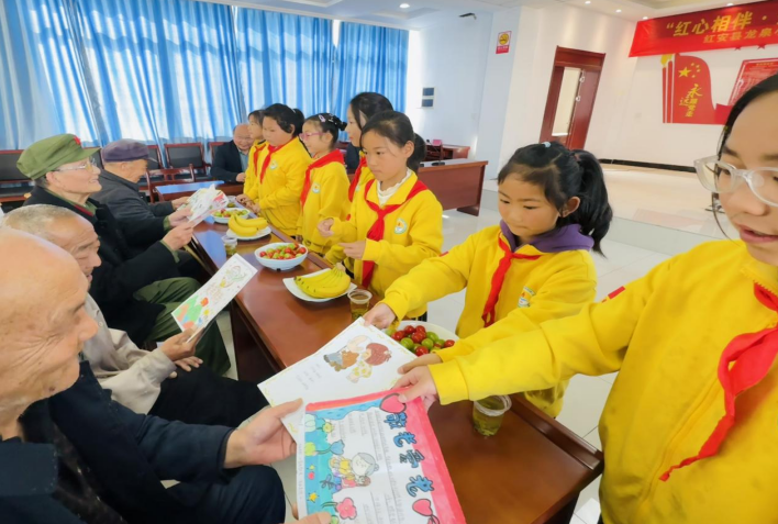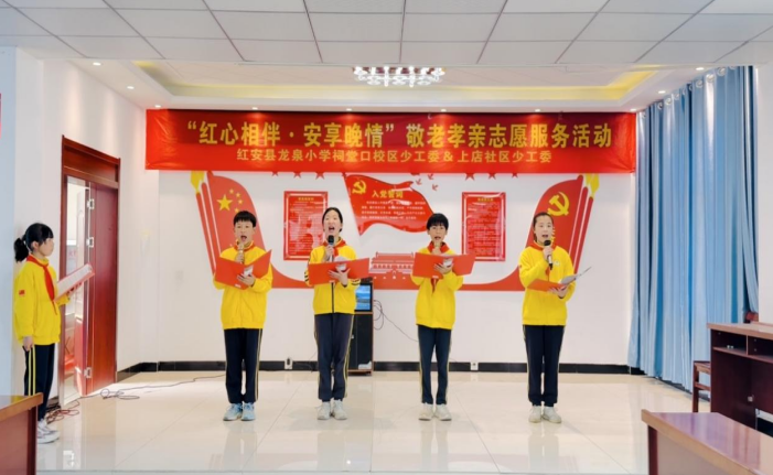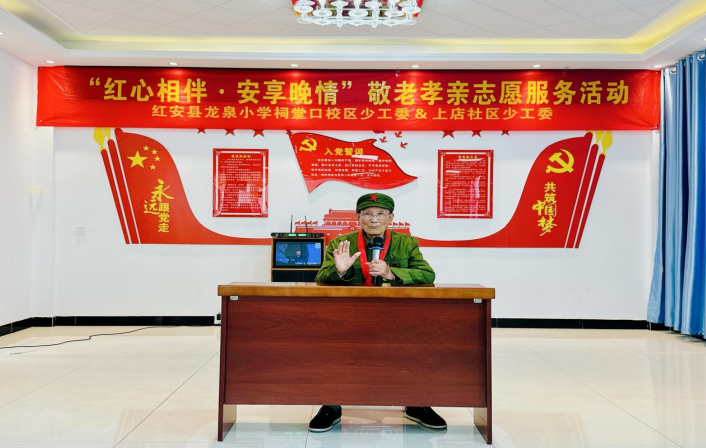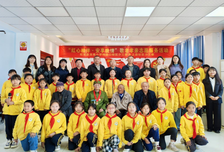 红安网消息 4月25日上午,红安县龙泉小学祠堂口校区少工委联合城关镇上店社区少工委,开展“红心相伴・安享晚情”敬老孝亲志愿服务活动。3-6年级师生代表走进社区,为抗战老兵及五保老人送去温暖与关怀。