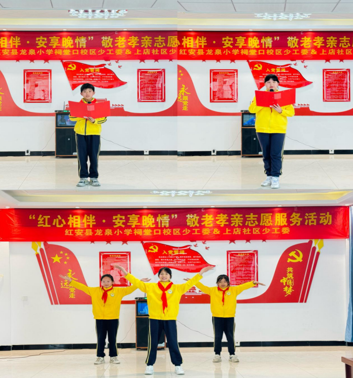 五年级少先队员带来《红色家书》朗诵和少儿舞蹈表演《向快乐出发》,真挚的情感、精彩的演出赢得老人们阵阵掌声,现场洋溢着欢乐祥和的氛围。